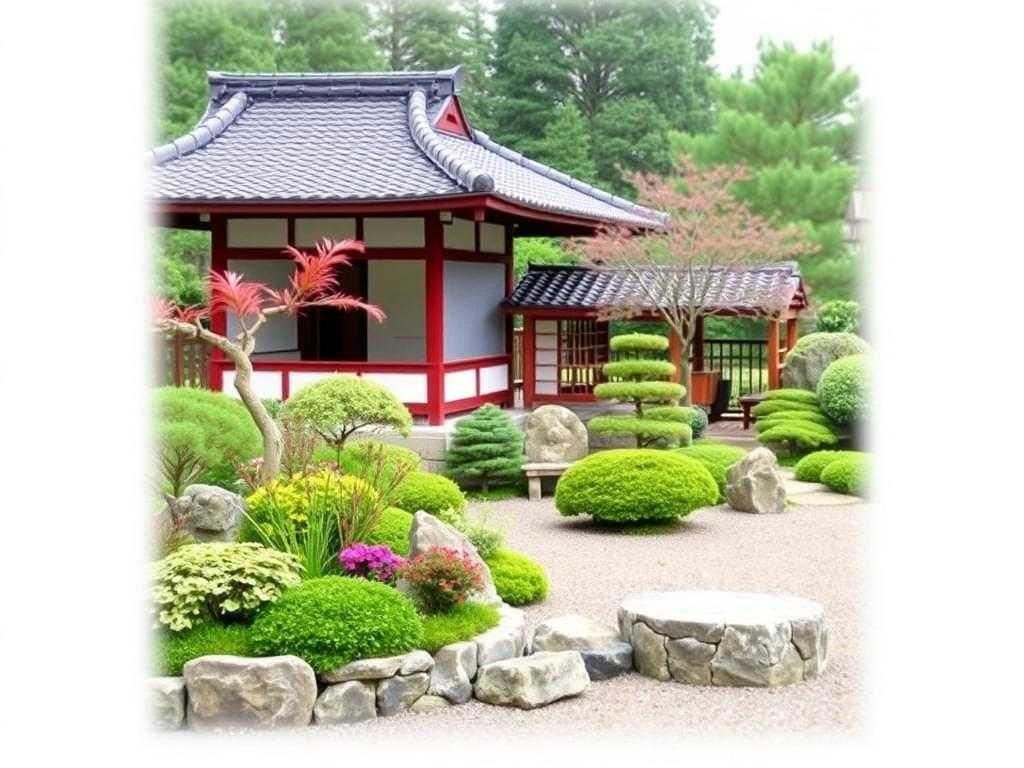 - Ландшафтный дизайн с элементами японского сада: Гармония природы в вашем дворе