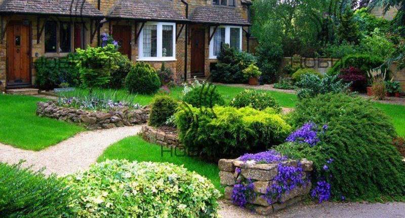 - Кустарники: рододендроны, гортензии, спиреи – они украшают сад своими цветами и листвой.