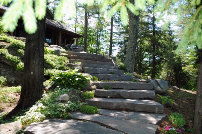 При создании тропинок и лестниц необходимо использовать нескользящие материалы и обеспечить хорошее освещение. Также рекомендуется установить перила или ограждения для предотвращения падений.