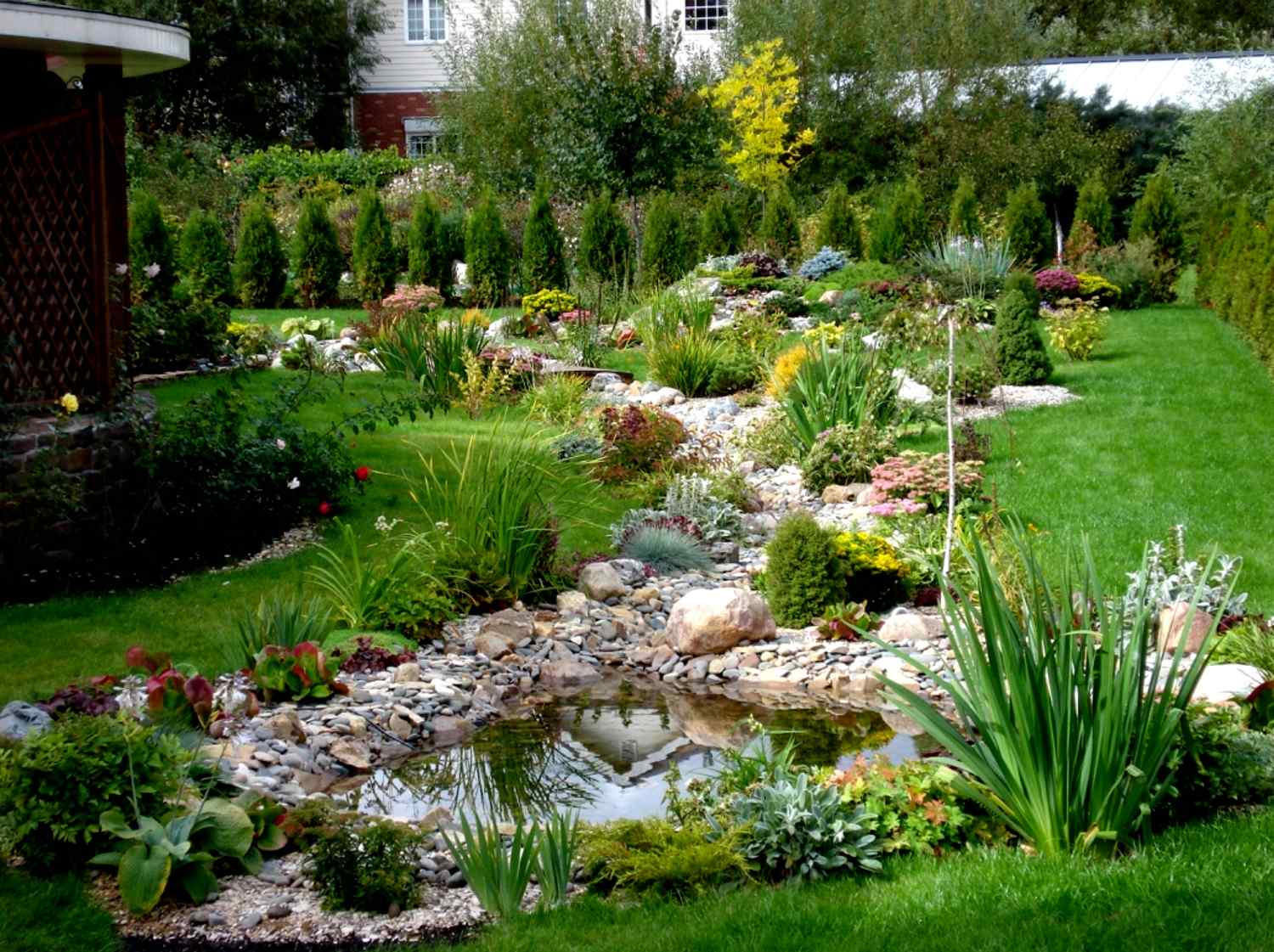 - Декоративная зона: Здесь мы создали цветники, рокарии и альпийские горки. Это самая красивая и яркая часть участка.